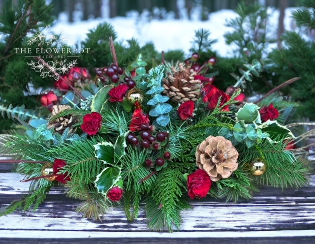 This classic piece is packed with holiday décor like carnations, pinecones, berries, balls and more! "Season of gathering" exudes warmth and is the perfect gift for your loved ones